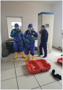 泄氯應(yīng)急操作演習(xí)事前并未提前通知相關(guān)人員,系人工觸動(dòng)泄氯報(bào)警裝置,警鈴響起后,三灣運(yùn)轉(zhuǎn)值班人員立即到達(dá)氯氣車間,泄氯回收裝置已自動(dòng)開啟,同時(shí)通知水廠和三灣凈化班組,穿著連體防護(hù)服并佩戴好壓縮空氣呼吸器,三灣凈化班組值班人員佩戴活性炭防護(hù)面罩到達(dá)氯氣車間參與應(yīng)急搶修。